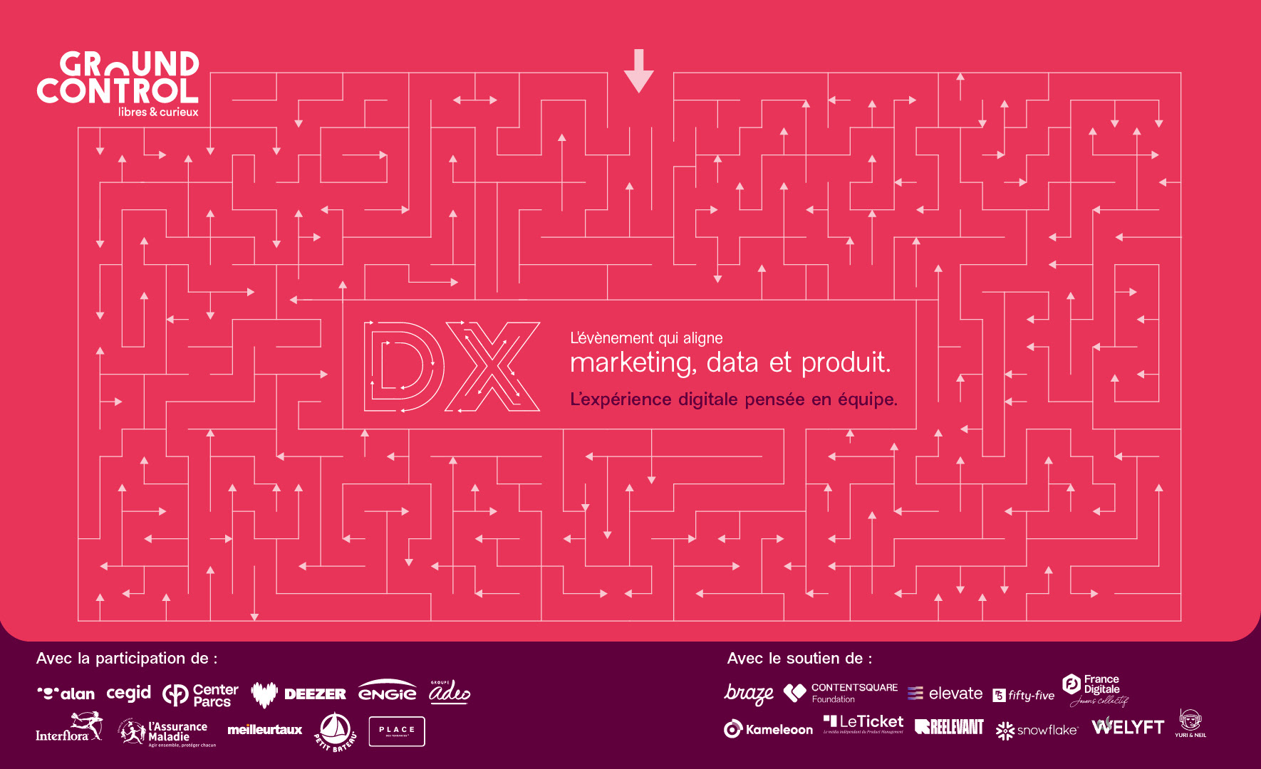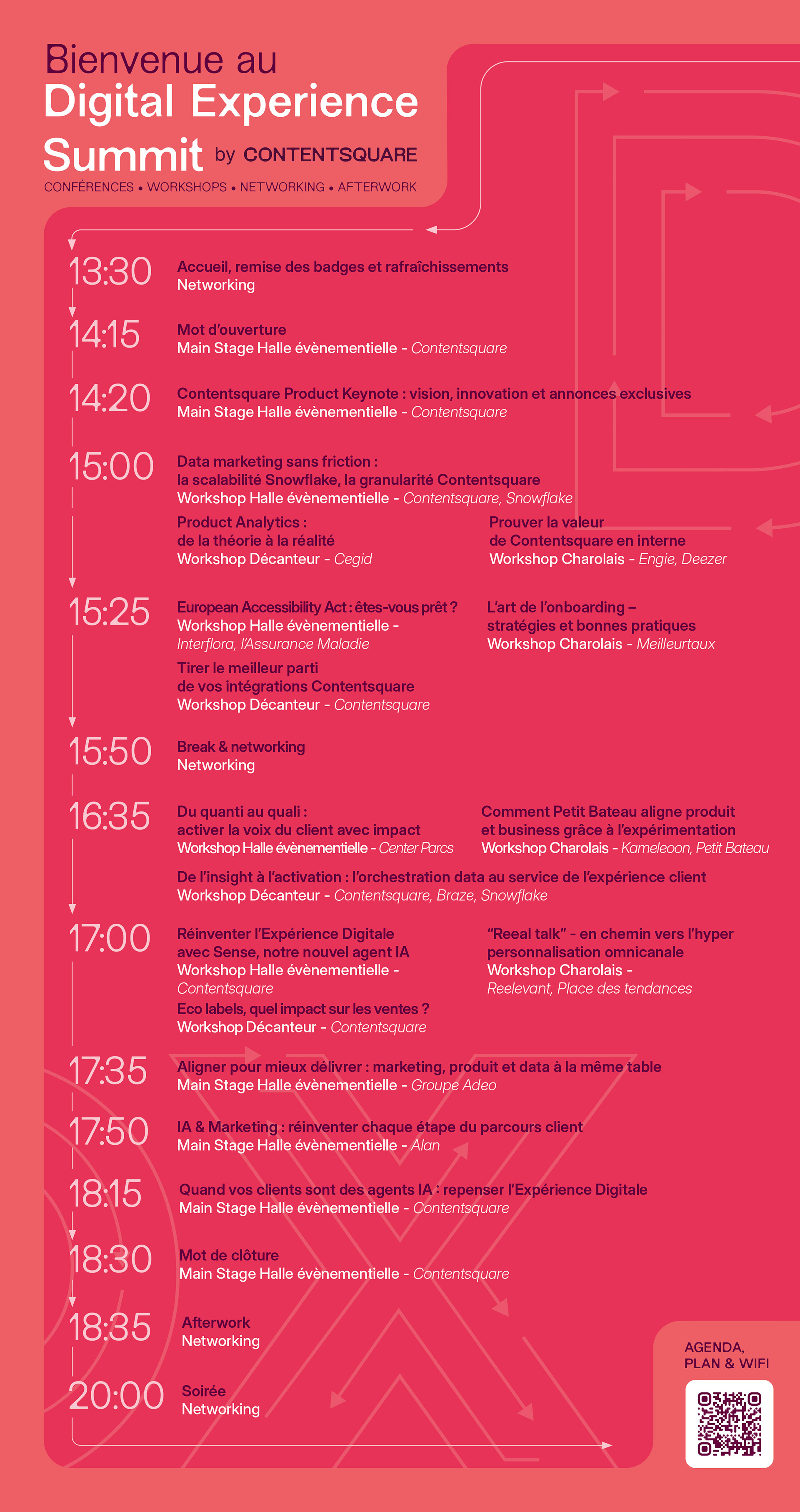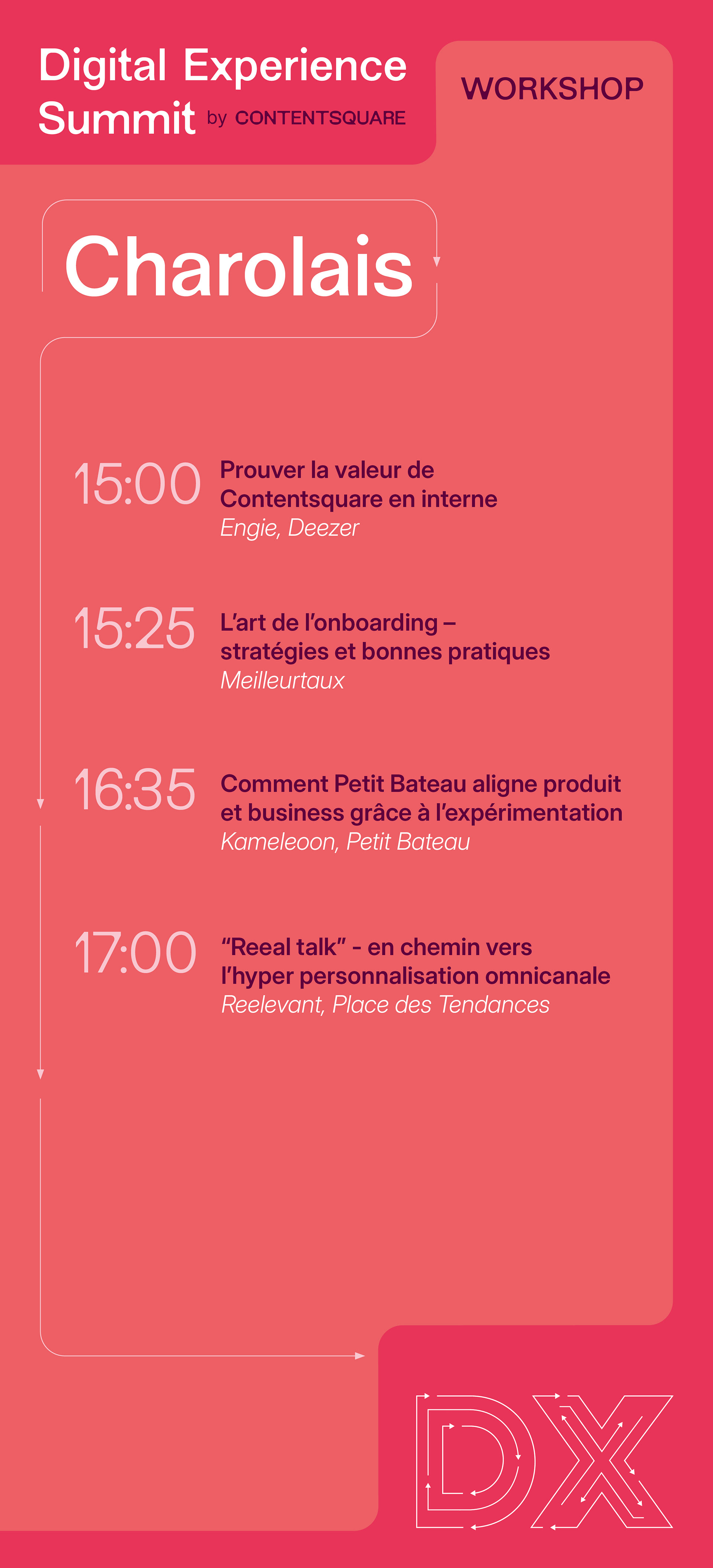 "Le Digital Experience Summit 2025, organisé par Contentsquare à Ground Control (Paris), était un événement phare dédié à l’innovation digitale, réunissant plus de 550 professionnels autour de thèmes comme l’IA, la personnalisation et l’accessibilité. Mon rôle ? Donner une identité visuelle forte et cohérente à cette expérience, en collaboration avec l’agence Cocotte Communication, pour que chaque détail reflète l’ambition et les valeurs de l’événement."